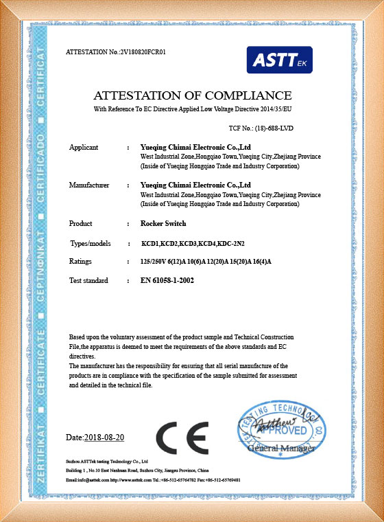 Chimai Electronic มีชื่อเสียงเป็นพิเศษในด้านสวิตช์ kcd ของอียิปต์ เหล่านี้เป็นสวิตช์ไฟฟ้าที่สั่งงานโดยตัวโยกซึ่งเคลื่อนที่ไปมาในระนาบแนวตั้ง สวิตช์แบบโยกมีอยู่ทั่วไปในระบบไฟฟ้า และใช้ในการใช้งานที่หลากหลาย รวมถึงยานยนต์ ทางทะเล และอุตสาหกรรม